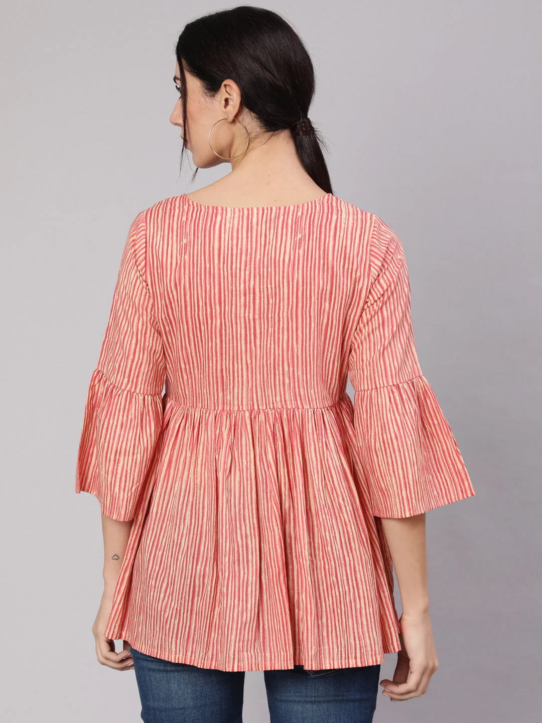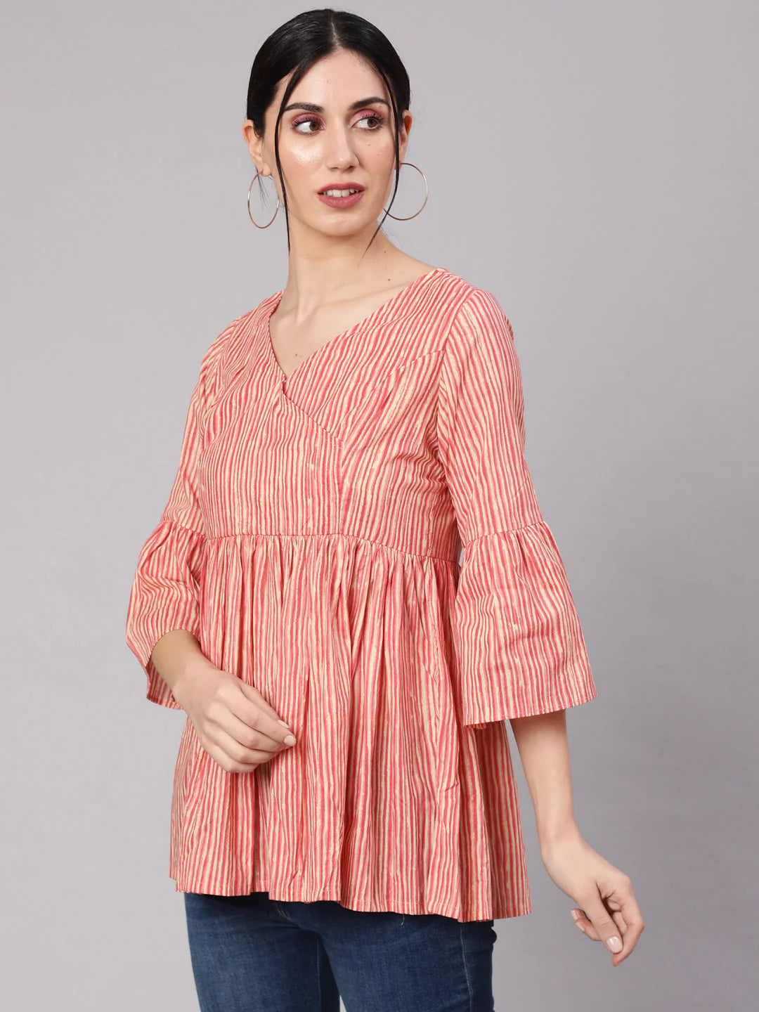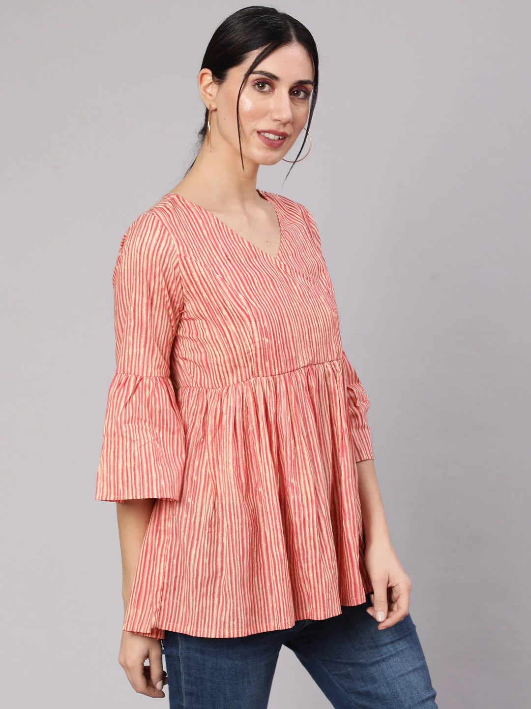 Cream & rust striped gathered tunic.