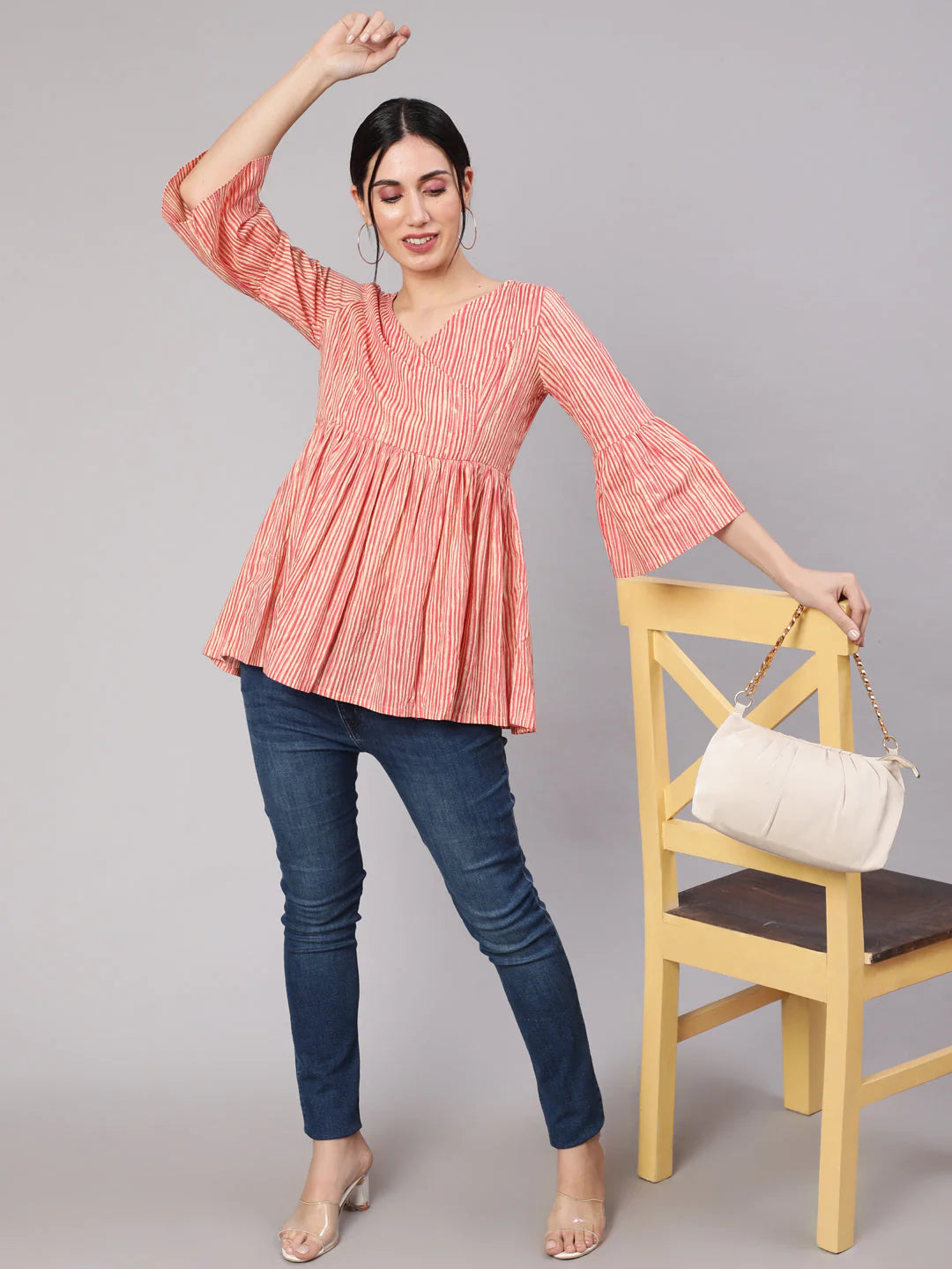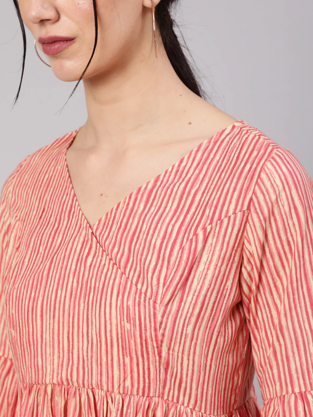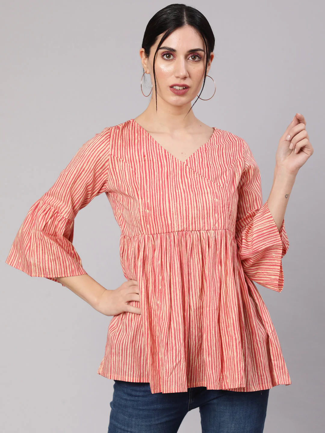Cream & rust striped gathered tunic.